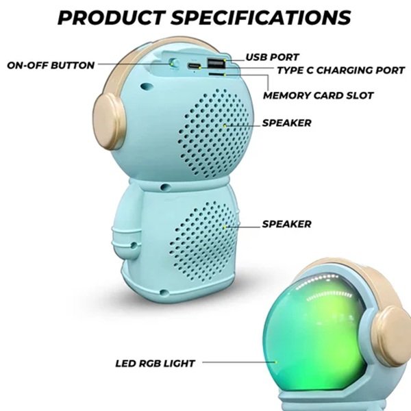 Product details of Astronaut X-808  Light Portable Wireless Radio Smart BT Speaker Astronaut Design LED Night Light Music Speaker.